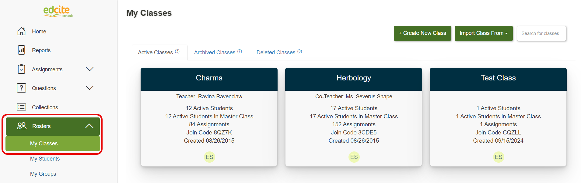 1. From the navigation bar on the left of your screen, select Rosters, My Classes.