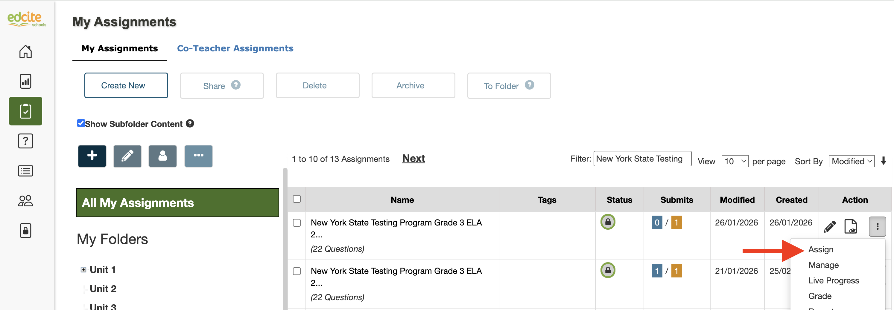 If you are creating or editing an assignment, you can assign it directly from the Assignment Editor.