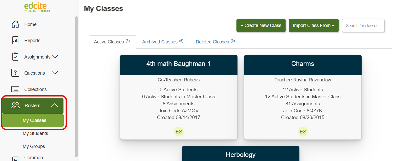 1. From your navigation bar on the left of your screen, click on Roster and then select My Classes.