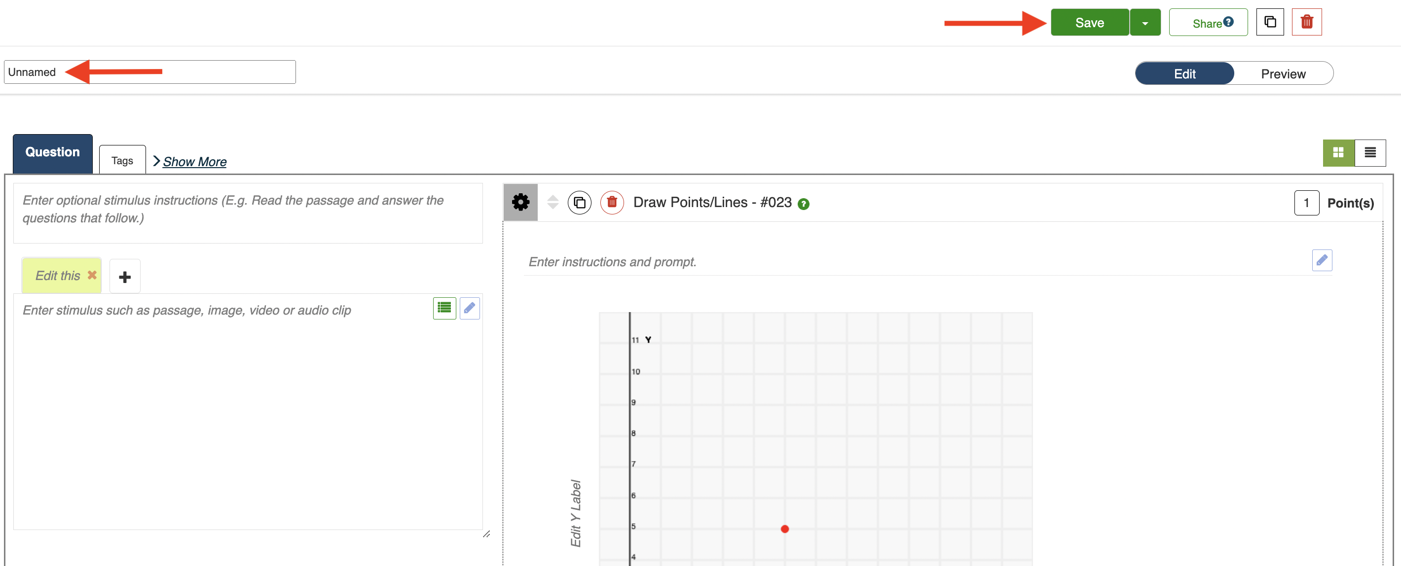 You can create a Draw Points / Lines (#023) question from the Create Question page. If you are familiar with our general question creating process, you can skip ahead to Step 5 and continue from there for information specific to the Draw Points / Lines (#023) question.