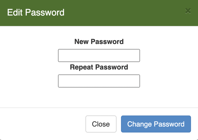 4. A smaller pop-up box will open prompting you to enter a new password. Confirm the new password and click Change Password. The password has now been reset.