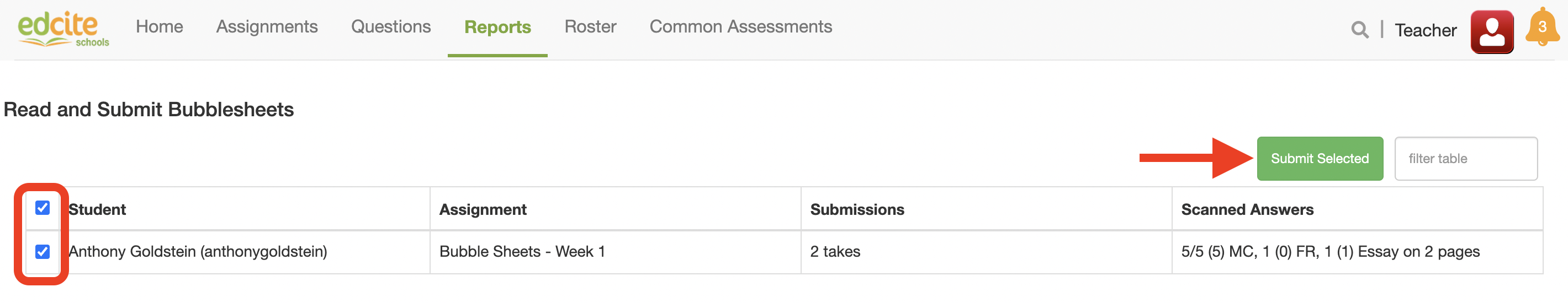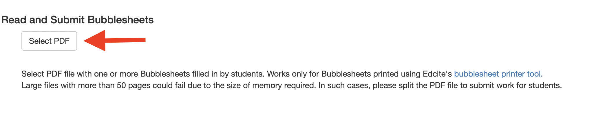 This feature is available as part of our premium platform, Edcite Schools. To learn more about Edcite Schools, click here. Edcite's Bubble Sheets allow teachers to administer Edcite assignments on paper. The directions below review 1) how to print Bubble Sheets for students and 2) how to upload the completed pages for grading within Edcite. Note: the bubble sheets feature is not currently supported on Firefox.
