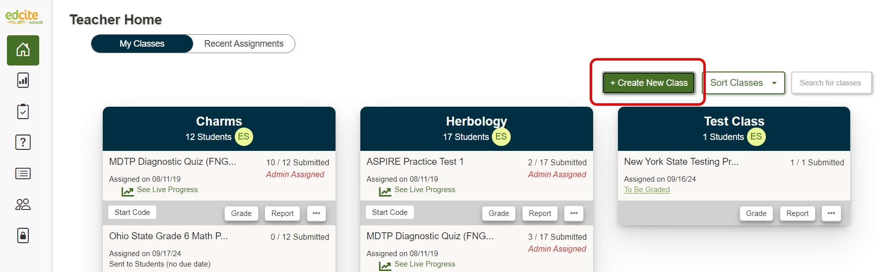 3. Click on +Create New Class at the top right of your homepage.