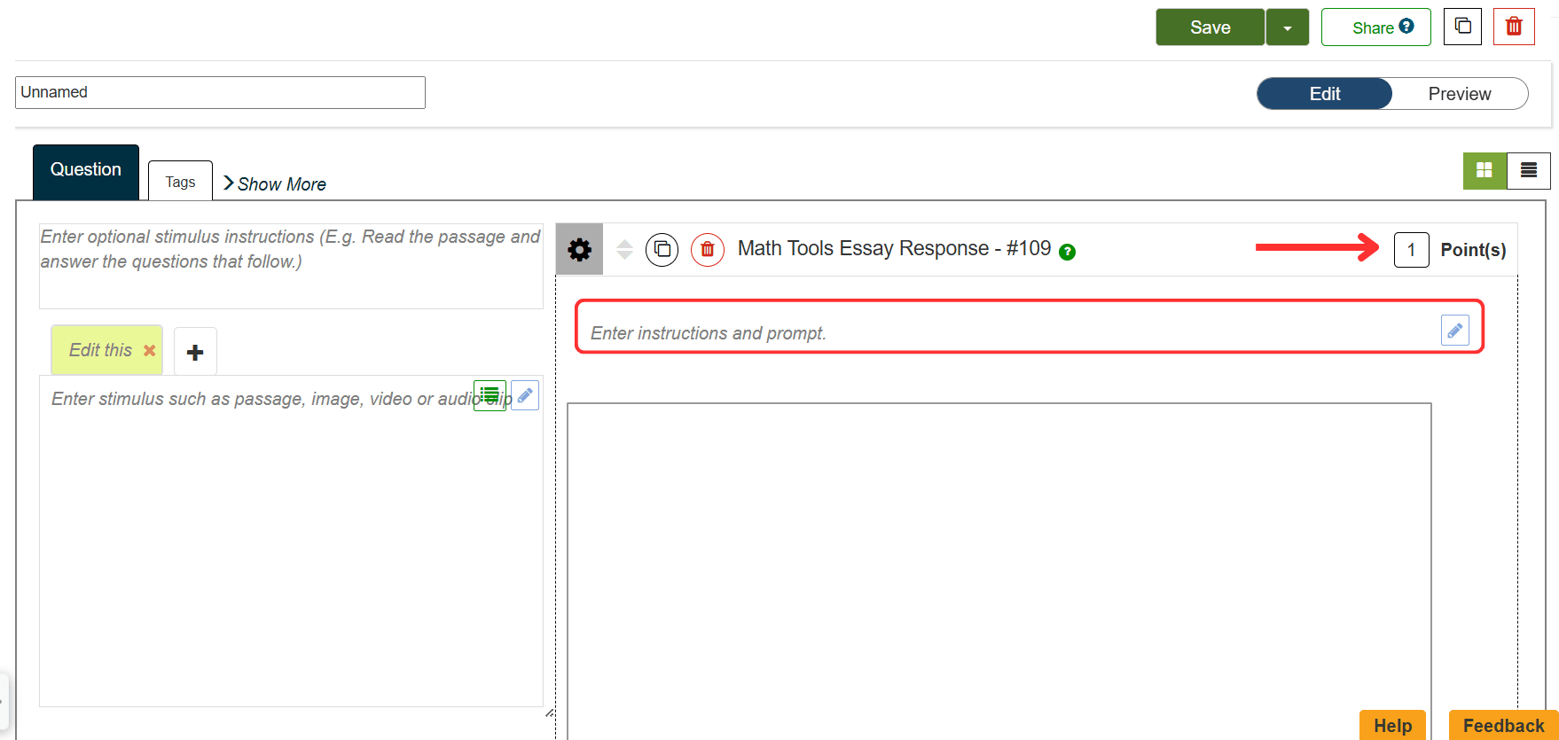 3. Enter the instructions and/or prompts in the space provided. If desired, change the point value for the question in the box to the top right of the question.