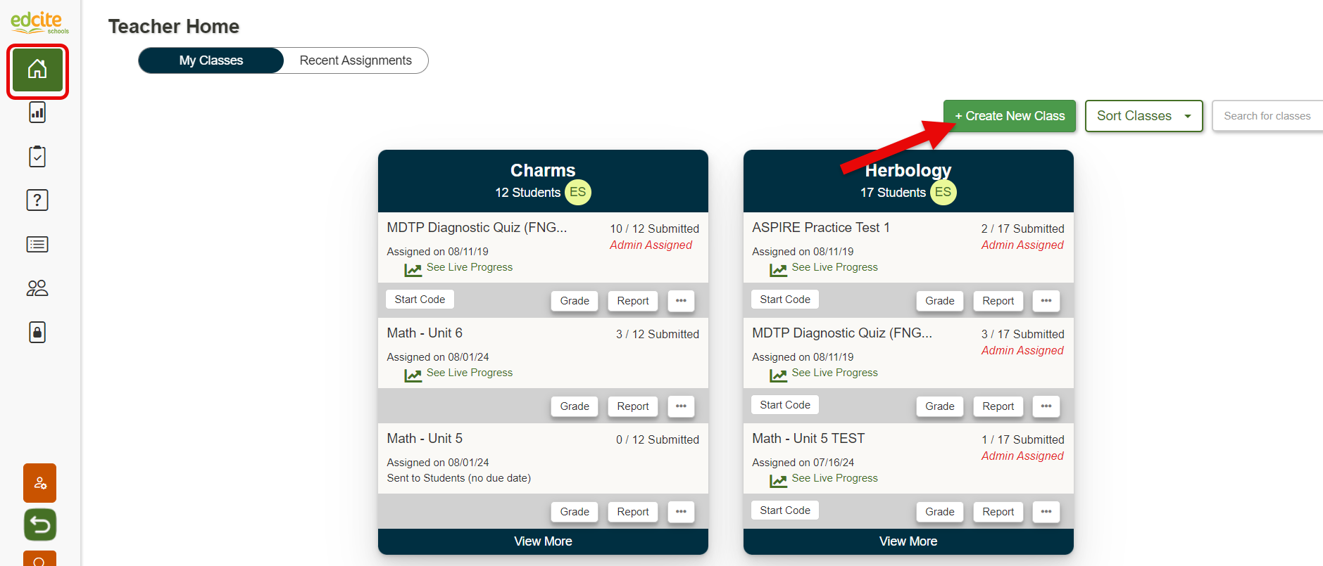 1. Click on the +Create New Class button found near the top right of your Home Page.