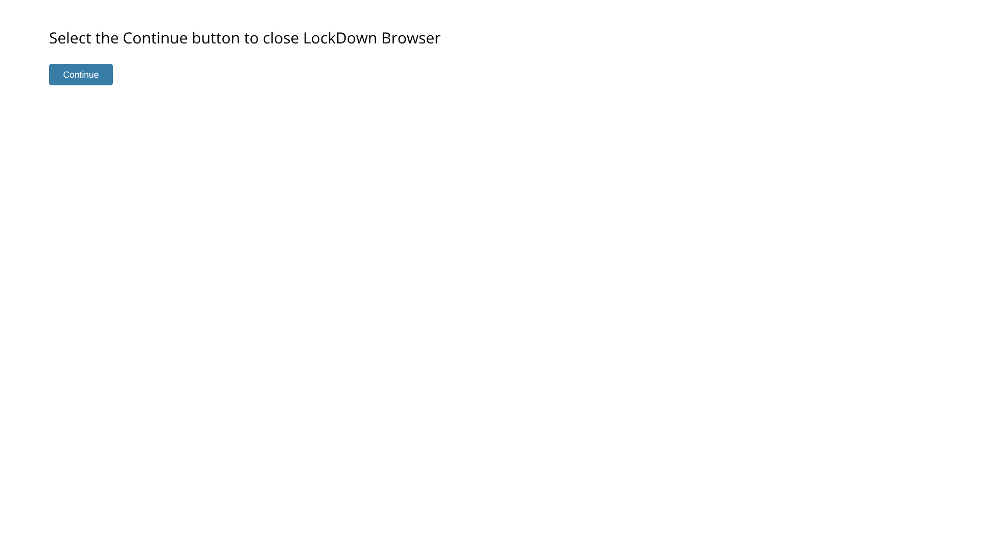 - Click on the "Continue" button to exit the Secure Browser.